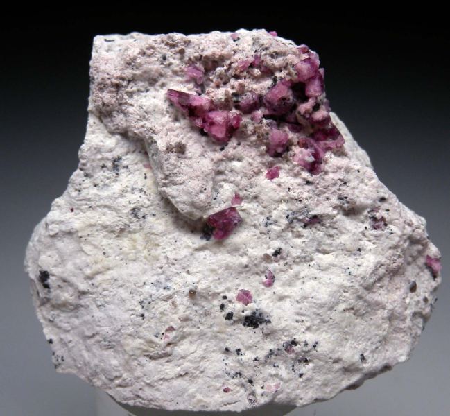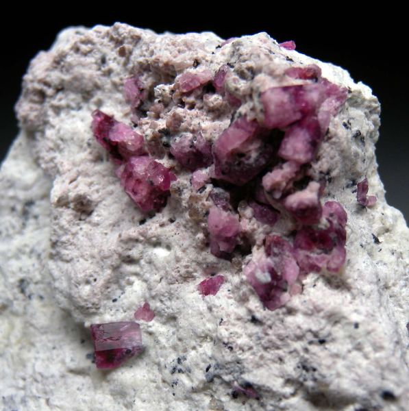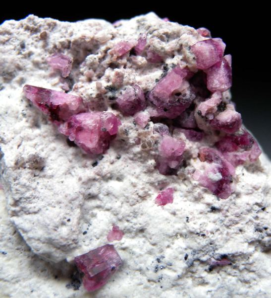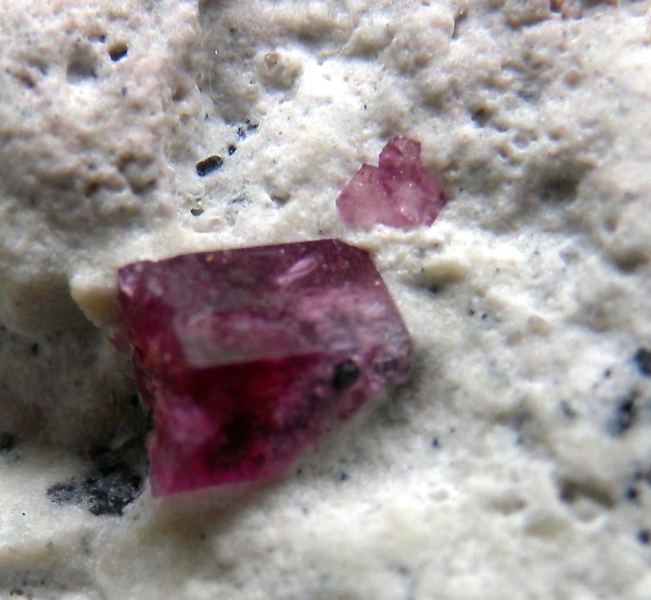 Multiple Red Beryl crystals on a Rhyolite matrix. The crystals reach 5mm in size with the best a terminated 3mm crystal in the center.Data last checked on 2nd Oct 2025 - specimen may no longer be available