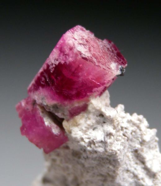 Glassy Red Beryl crystal on a Rhyolite matrix. The crystal forms a sharp hexagonal prism that fractured and shifted due to natural processes prior to being collected. The crystal is 1.2 x 0.6cm, doubly-terminated and undamaged.Data last checked on 2nd Oct 2025 - specimen may no longer be available