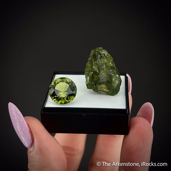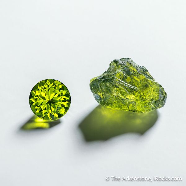 This is a Forsterite var. Peridot (Rough 40.41 ct & Cut 8.35 ct) from Peridot Mesa, San Carlos, Gila Co., Arizona, USA. The saying is true: everything is better together, and this rough and cut pair of rare American-origin peridot is certainly no exception.Data last checked on 10th Oct 2025