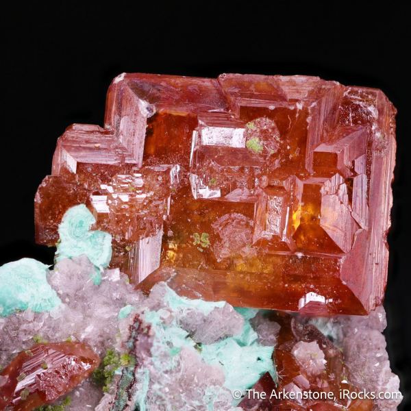 This is a Wulfenite with Malachite from Tsumeb Mine, Tsumeb, Oshikoto Region, Namibia. Tsumeb wulfenites have a distinctive look that sets them apart from other specimens of this popular species, when at their best, with this strong metallic luster and rich coloration.Data last checked on 18th Jan 2026