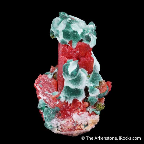 This is a Chalcotrichite included Cerussite with Malachite from Tsumeb Mine, Tsumeb, Oshikoto Region, Namibia. Tsumeb is most known for the amazing and beautiful combinations of minerals there and one of the rarest mineral combination occurrences at Tsumeb is when chalcotrichite, a fibrous variety of cuprite, includes other minerals.Data last checked on 16th Oct 2025