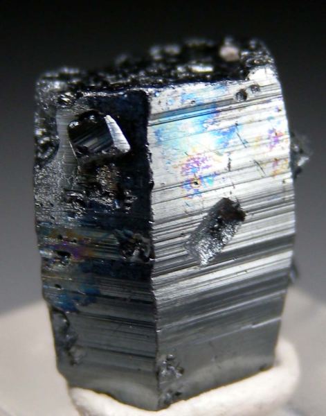 Single, stout hexagonal prism of Hematite, an uncommon crystal form for Hematite that reminds me of a style rarely seen in Kalahari Hematite crytals. Doubly-terminated crystal silvery in color with bright metallic luster. Complete and undamaged with uniform shape though with with a bit of cavernous growth on one termination and some indents from other crystals on some prism faces. These are found in an iron mine on an island located 8 kilometers off the coast of Iran.Data last checked on 16th Oct 2025 - specimen may no longer be available