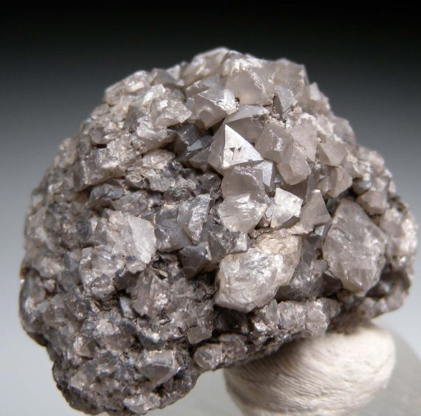 Crystals of translucent grey octahedral Senarmontite on both sides of the specimen, with larger crystals to 6mm on the front and small drusy crystals on the back. Discovered in 1845, the Djebel Hammimat Mine is the type locality for sénarmontite, an antimony oxide dimorph of Valentinite. The specimen is solid Senarontite without matrix.From: Marin Minerals