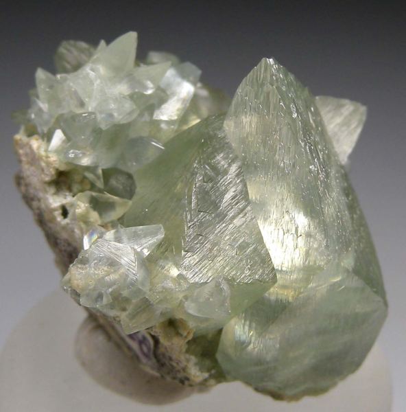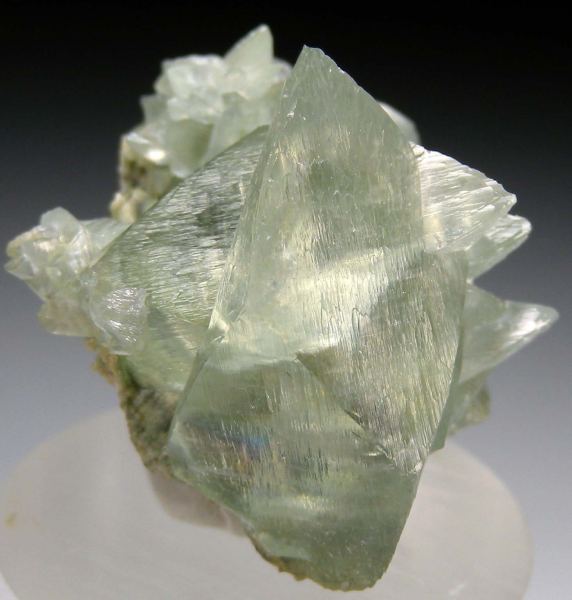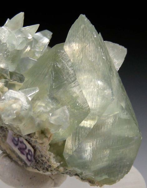 Cluster of large green Smithsonite crystals from the Berg Aukus Mine. Main crystal is 2.8cm and translucent to transparent. Ex. Mike Keim.Data last checked on 20th Oct 2025 - specimen may no longer be available
