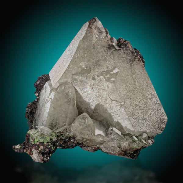 A high-quality and striking Anglesite miniature from the famous Namibian Tsumeb mine. Anglesite is one of the most well-known minerals from this world-renowned deposit and, typical of this species, can take on many different forms, not all of which are immediately recognizable as Anglesite. However, there is no doubt what this fine miniature is: the 2.4 cm precisely crystallized, beautifully developed main crystal of Anglesite is surrounded by smaller ´cousins´ along the base. All crystals are opaque, milky-white, and partially water-clear, with a variable coating of altered Limonite, which provides additional contrast and thus highlights the surface texture and crystal structure. An excellent example of well-crystallized Anglesite from Tsumeb.Data last checked on 20th Oct 2025 - specimen may no longer be available