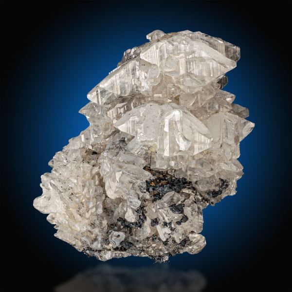 A wonderful piece that consists almost entirely of nicely crystallized grayish-white, partly water-clear cerussite crystals up to 1.8 cm long with a striking cerussite star nicel perched atop this great piece. Definitely a beautiful, unusually complete sixling of Cerussitefrom the famous Tsumeb mine on an equally excellently crystallized matrix. Many of the chisel-shaped crystals have outstanding clarity and luster. The entire aggregate is twinned and a floater, with only a tiny piece of matrix at the bottom showing where it was attached!Data last checked on 20th Oct 2025 - specimen may no longer be available