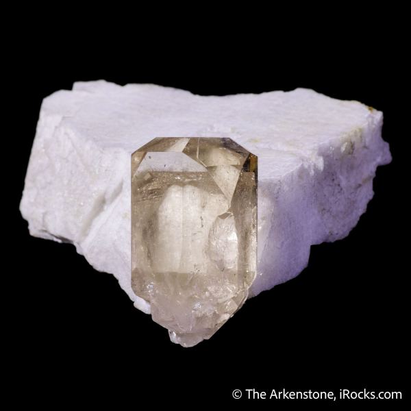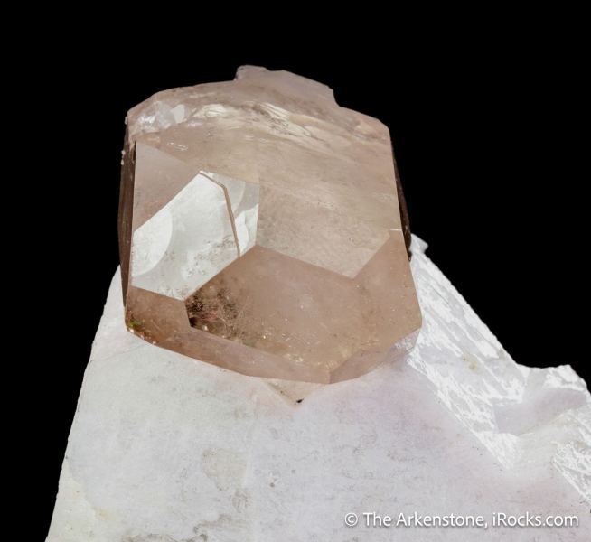 This is a Topaz on Feldspar from Dassu, Braldu Valley, Shigar Dist., Gilgit-Baltistan, Pakistan. A 4 x 2.8 x 1.8 cm crystal of GEM transparent topaz, just perfectly perched atop a matrix of feldspar, as if about to jump off!Data last checked on 24th Jan 2026 - specimen may no longer be available