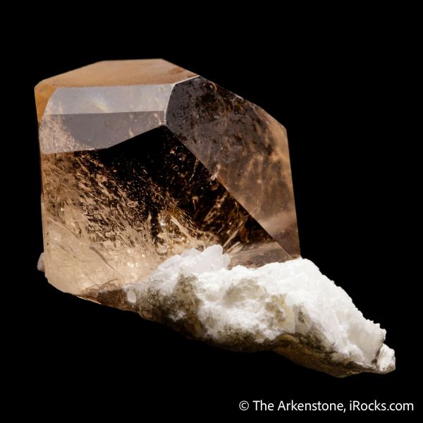 This is a Topaz with Feldspar from Dassu, Braldu Valley, Shigar Dist., Gilgit-Baltistan, Pakistani. A stunning gem thumbnail specimen showing a perfect, glassy, transparent topaz with ideal color, on the ideal balanced and contrasting matrix of cleavelandite below.Data last checked on 24th Jan 2026