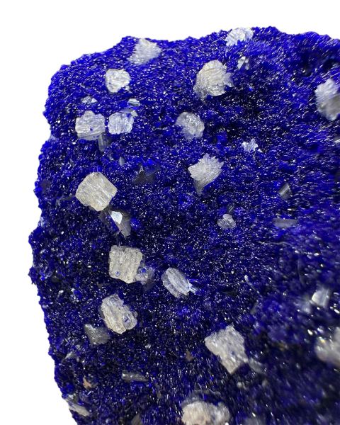 Specimen of electric blue, sparkly azurite with lustrous cerussite sprinkle - looks like "Cairo Night". From 2024 find in Republic of the Congo.;Data last checked on 29th Oct 2025