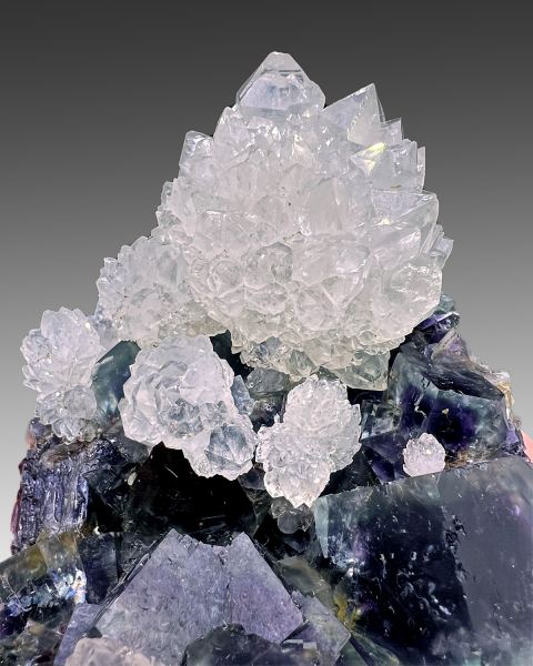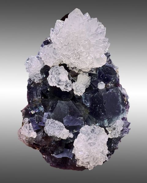 Combo of sharp fluorite crystals, with color zoning, with lustrous quartz "flowers". Data last checked on 4th Nov 2025
