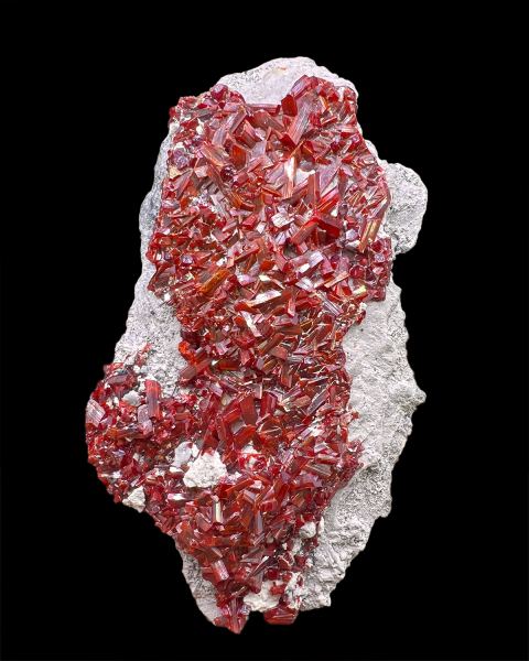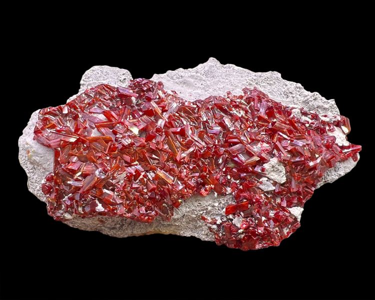 Pretty specimen of lustrous and intense red realgar crystals on contrastive matrix. From famous 2005 find in Baia Sprie mine, Romania – last find in Maramures area before permanent mines closure.Data last checked on 6th Nov 2025