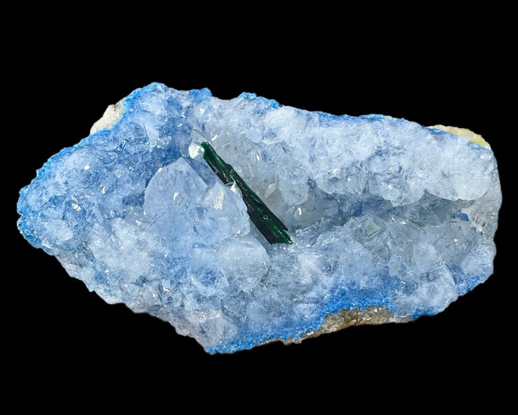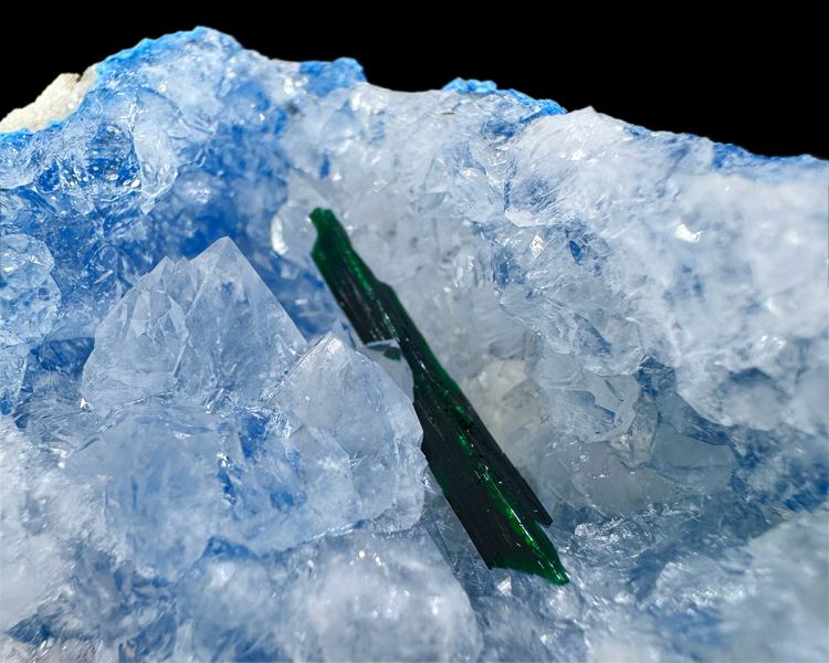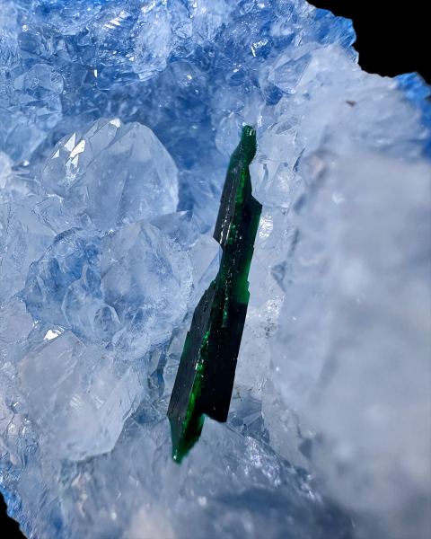 Cool combo of green malachite crystals, on lustrous quartz overgrowing blue shattuckite. Great colors and luster.Data last checked on 6th Nov 2025