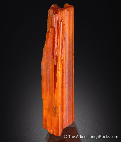 This is a Crocoite from Adelaide Mine, Dundas Mineral Field, West Coast Mun., Tasmania, Australia. A solid, robust crystal of crocoite that stands tall and shows off a 3-dimensional termination, very different than the usual "spiky" style.Data last checked on 7th Nov 2025 - specimen may no longer be available