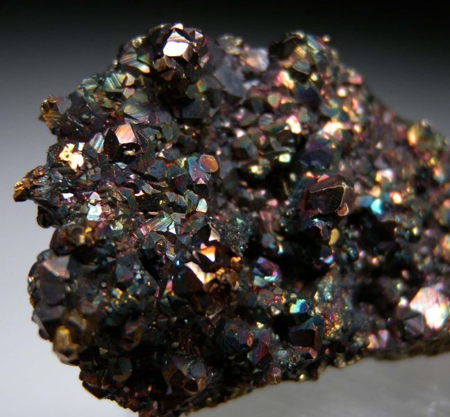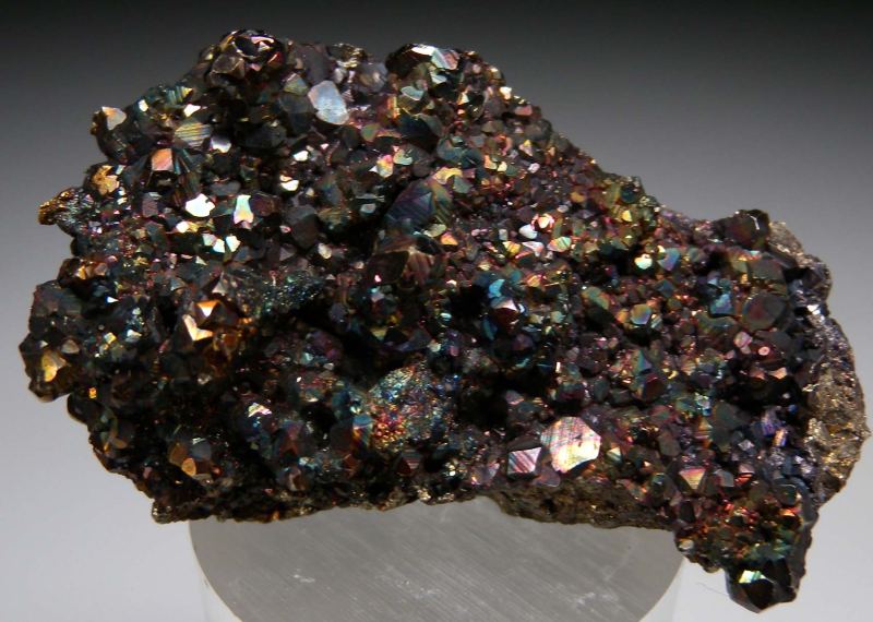Colorful specimen of iridescent Pyrite crystals from Butte. Pyrite crystals form atop a matrix of solid Pyrite.Data last checked on 11th Nov 2025 - specimen may no longer be available