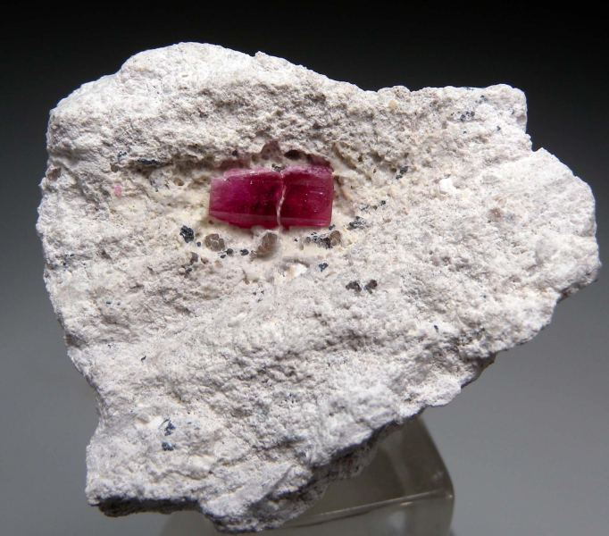 Glassy Red Beryl crystal on a Rhyolite matrix. The crystal forms a sharp hexagonal prism of 8 x 4 mm. The crystal is doubly-terminated.Data last checked on 11th Nov 2025 - specimen may no longer be available