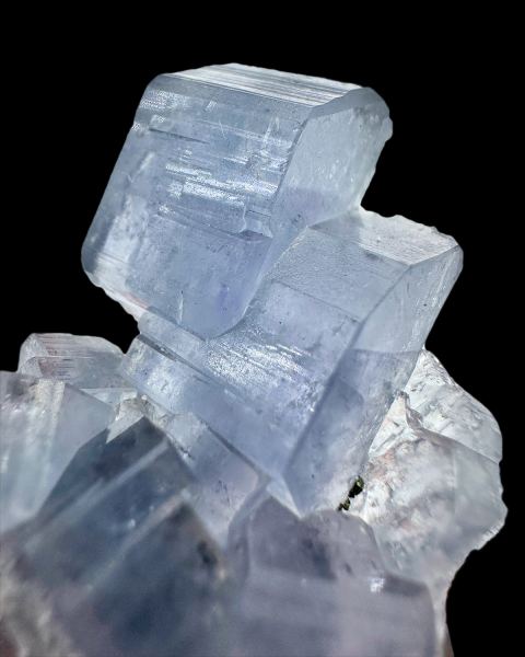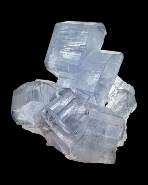 Cluster of well formed, sharp and lustrous fluorapatite crystals, in bluish color.;Data last checked on 12th Nov 2025 - specimen may no longer be available