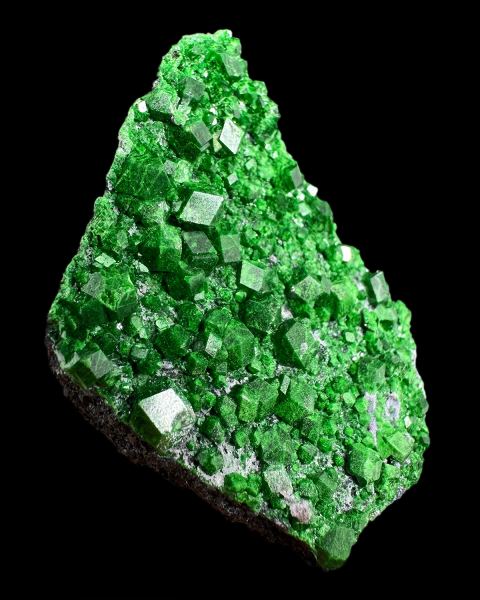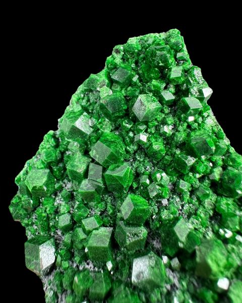 Specimen with relatively big, green, sparkly uvarovite crystals on matrix. Great luster and color.Data last checked on 14th Nov 2025