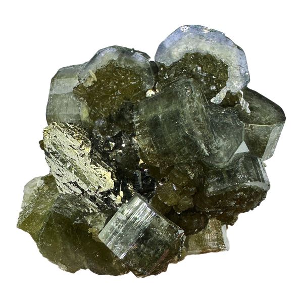 Great combo of well formed, sharp and lustrous fluorapatite crystals combined with arsenopyrite, muscovite, siderite and pyrite. Apatites got cool color zoning. Classic specimen from famous PanasqueiraData last checked on 16th Nov 2025 - specimen may no longer be available