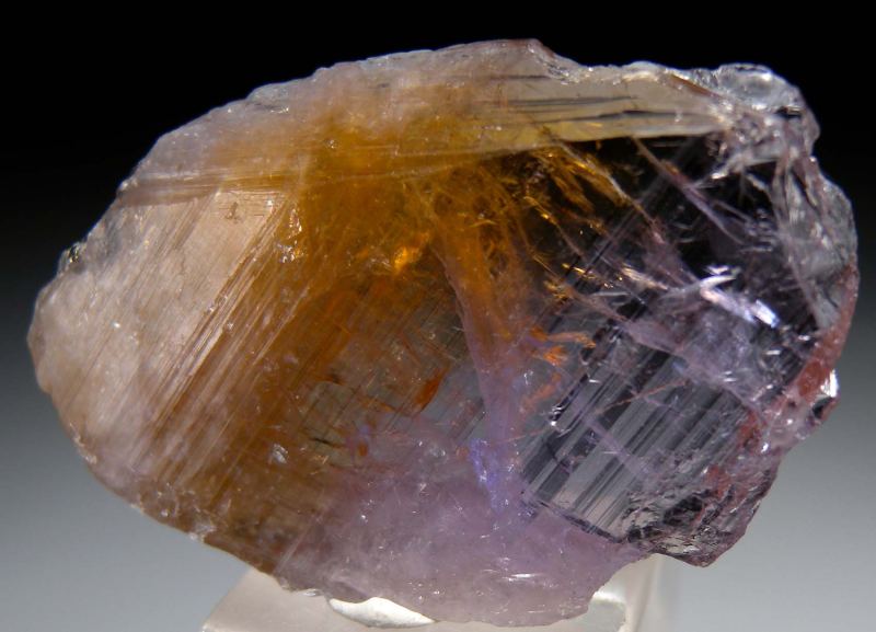 Bladed single crystal of Magnesioaxinite from the Merelani Tanzanite mines. Glassy luster and good transparency with colors of orange and purple.Data last checked on 19th Nov 2025