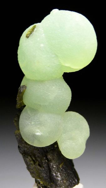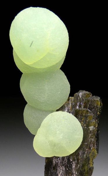 Sculptural specimen composed of interconnected, translucent spheres of green Prehnite atop Epidote crystals. This is formerly a Tim Sherburn collection specimen. Tim used to buy these uncleaned in bulk, trim and clean them, and then sell them individually to collectors. This is a top specimen from the many thousands he cleaned, probably the most aesthetic, at least the prettiest I can recall ever seeing.Data last checked on 19th Nov 2025 - specimen may no longer be available