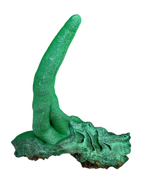 Specimen of intensively green, pseudo-stalactite malachite. Cool form.Data last checked on 20th Nov 2025 - specimen may no longer be available