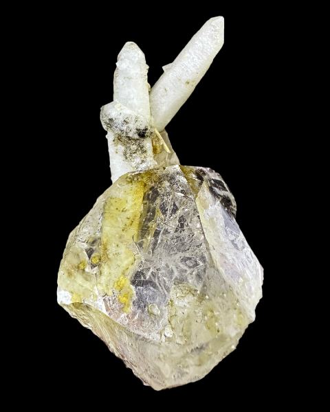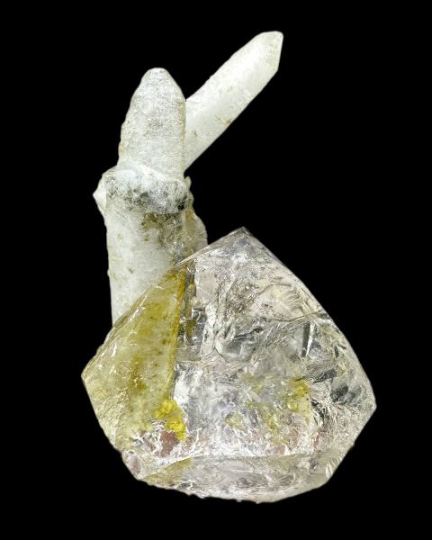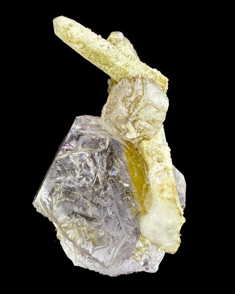 Aesthetic specimen of well formed, water clear, sharp and lustrous fluorite crystal cube combined with quartz and calcite. Cool form.Data last checked on 20th Nov 2025 - specimen may no longer be available