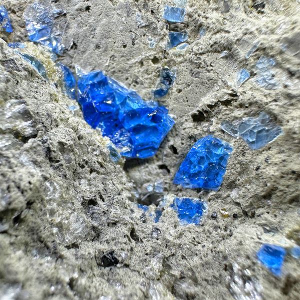 Interesting specimen of rare, intensive blue haüyne crystals in pumice matrix, from classic German locality.Data last checked on 20th Nov 2025 - specimen may no longer be available
