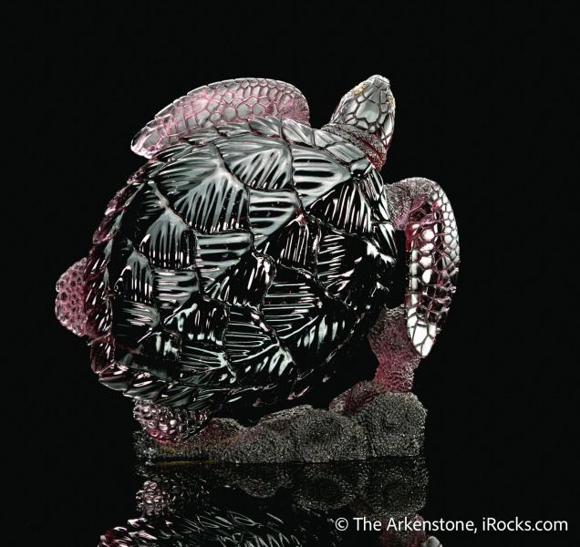 This is a Tourmaline Carving by Gerd Dreher from Minas Gerais, Brazil (presumed). This work of lapidary art is made from old tourmaline rough material (presumably from Minas Gerais in Brazil), and carved by famous master carver Gerd Dreher of Idar-Oberstein.From: The Arkenstone
