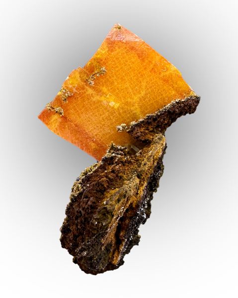 Tabular wulfenite crystal, in good orange color, on contrastive matrix. Los Lamentos classic.Data last checked on 28th Nov 2025