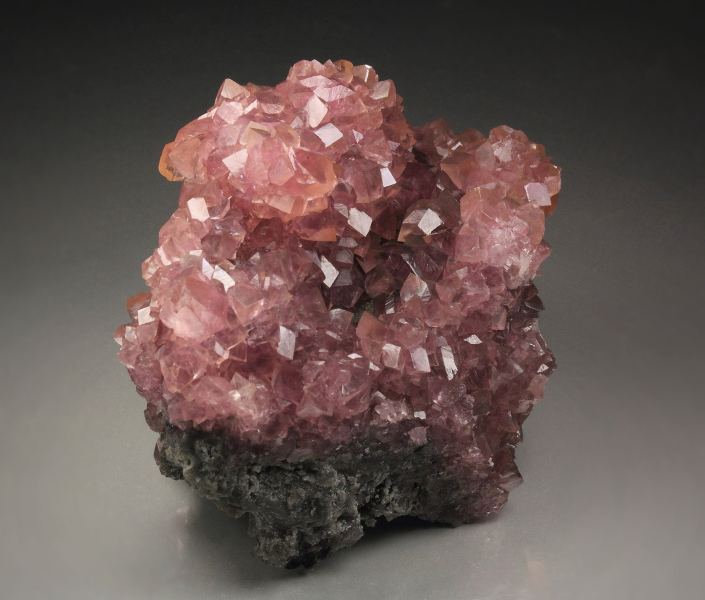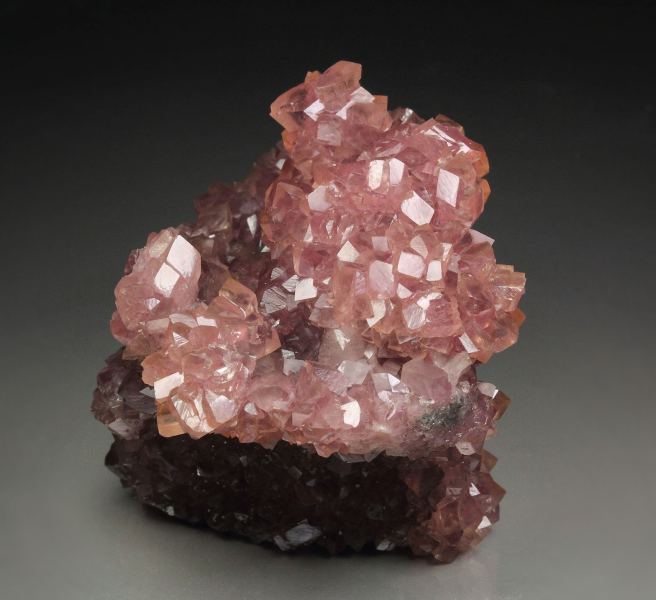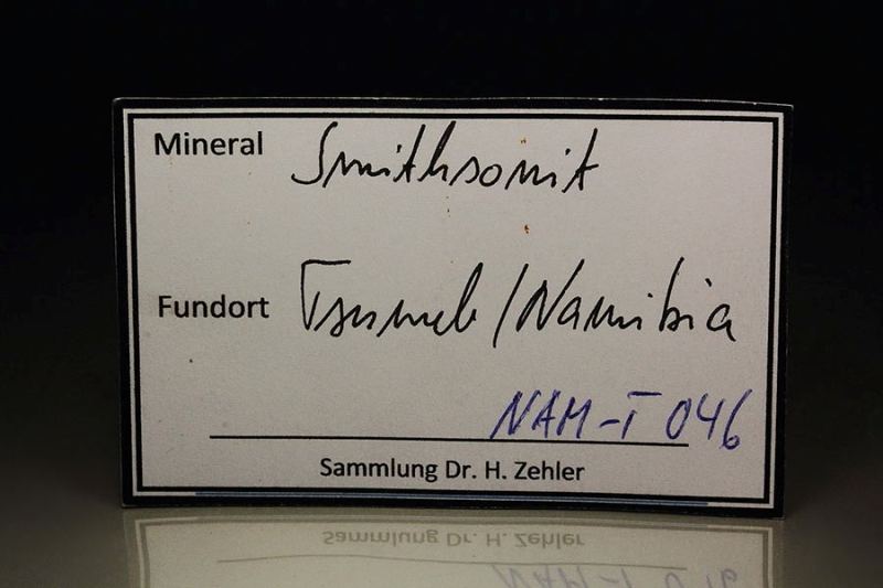 A stunning specimen of pink colored smithsonite var. cobaltoan smithsonite from the famous Tsumeb Mine, Namibia. This piece comes from the collections of Dr. H. Zehler, Germany (with label), and Dr. B.Schumacher, Germany (with label), which adds provenance and value to the piece. It displays sharp and well formed rhombohedral crystals with good transparency and gemminess. They completely cover the base all over. The color is rich and saturated pink, which is simply gorgeous. The crystals have strong luster and nicely reflect the light. A balanced, aesthetic arrangement gives this piece strong visual impact from multiple angles. Cobaltoan smithsonite of this caliber, showing both intense cobalt coloration and crisp crystal habit, is increasingly rare on the market since Tsumeb has long been closed to production. In excellent condition., Exceptional world grade quality cobaltoan smithsonite from Tsumeb – a treasure for every top collection!, Data last checked on 4th Dec 2025