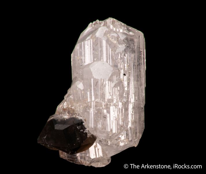 This is a Phenakite with Smoky Quartz from Homestake Pass, Boulder Batholith, Jefferson Co., Montana, USA. A tall, elegant crystal of phenakite with fancy form, subtle and complex growth faces that make it sparkle, and with a shocking size and shape for a USA-origin specimen of this species.Data last checked on 22nd Jan 2026