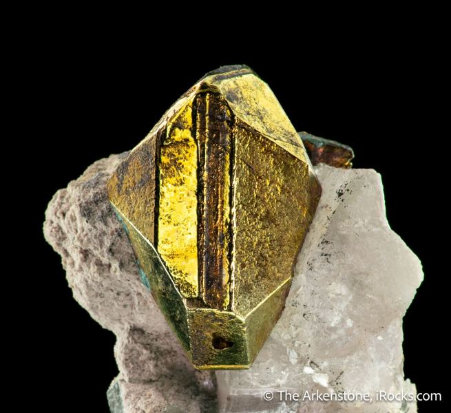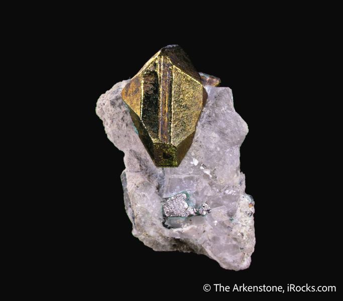 This is a Chalcopyrite with Carrollite and Calcite from Kamfundwa Mine, Kambove Territory, Haut-Katanga, DR Congo. A sharp crystal of chalcopyrite that, personally, I consider among the finest in size class for sharp form, color, and stunning contrast as it sits perched in calcite matrix.Data last checked on 22nd Jan 2026