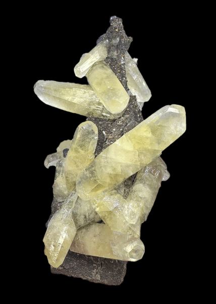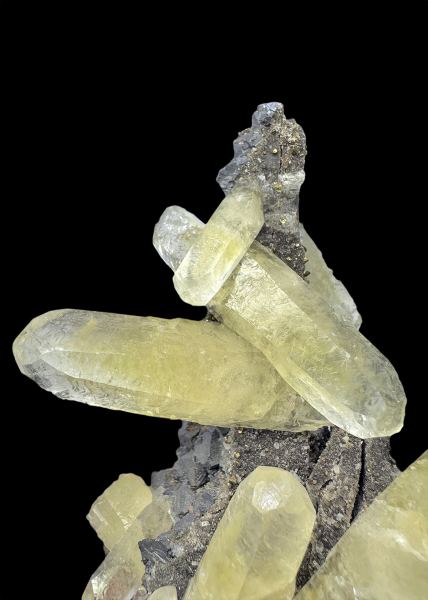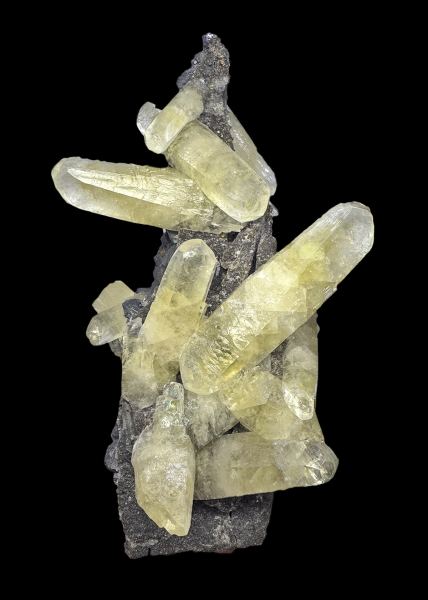Aesthetic specimen of well-formed, yellow calcite crystals, with galena, on matrix. Classic.Data last checked on 6th Dec 2025