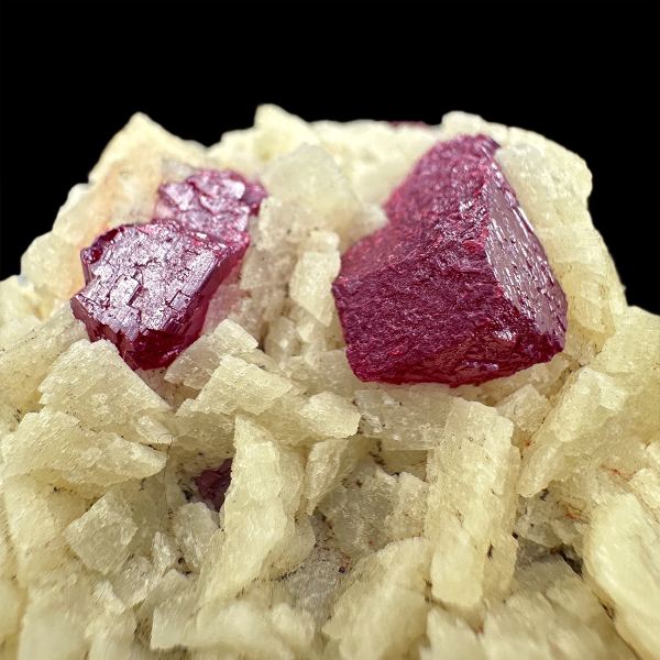 Specimen of deep red cinnabar crystals on contrastive dolomite matrix.Data last checked on 10th Dec 2025