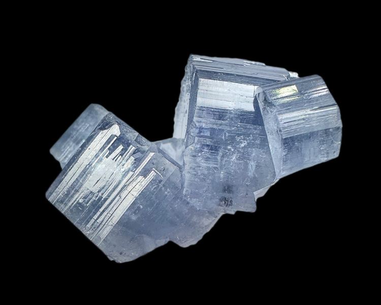 Cluster of well formed, sharp and lustrous fluorapatite crystals, in bluish color.;Data last checked on 12th Dec 2025