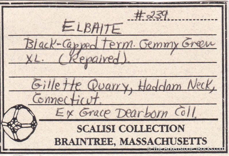 This is a Elbaite Tourmaline from Gillette Quarry, Haddam Neck, Haddam, Middlesex Co., Connecticut, USA. Connecticut tourmalines are very uncommon on the market and this is a very good green elbaite from the Gillette Quarry.Data last checked on 28th Jan 2026