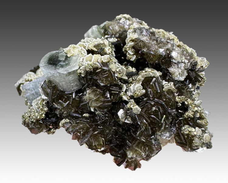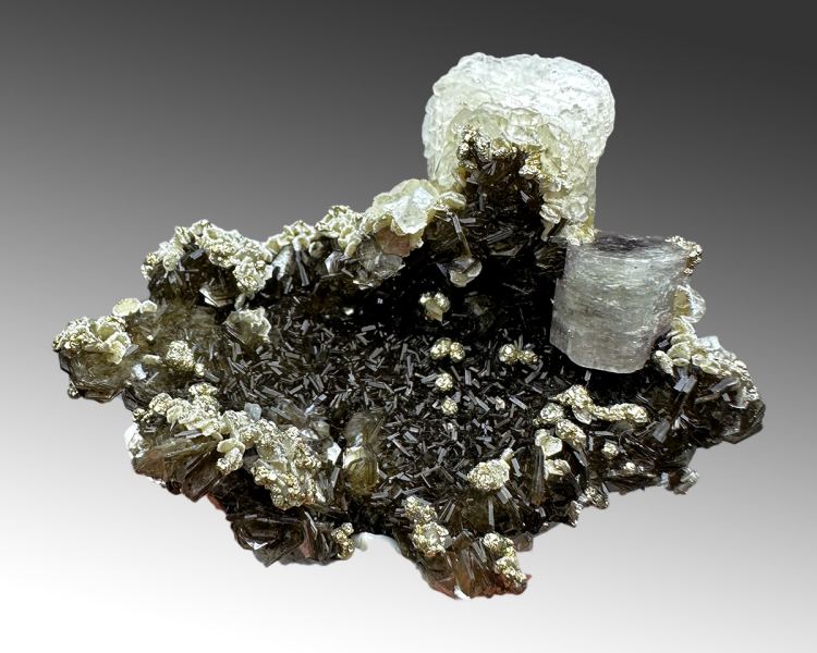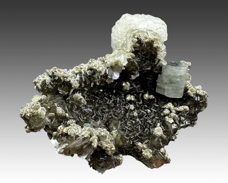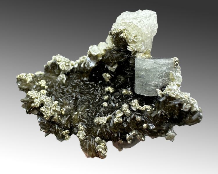 Great combo of sharp and lustrous fluorapatite crystals on super sparkly muscovite, with siderite, pyrite and calcite. Beautiful specimen from famous Panasqueira.Data last checked on 20th Dec 2025 - specimen may no longer be available