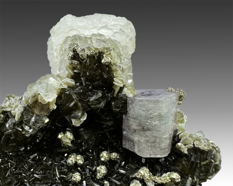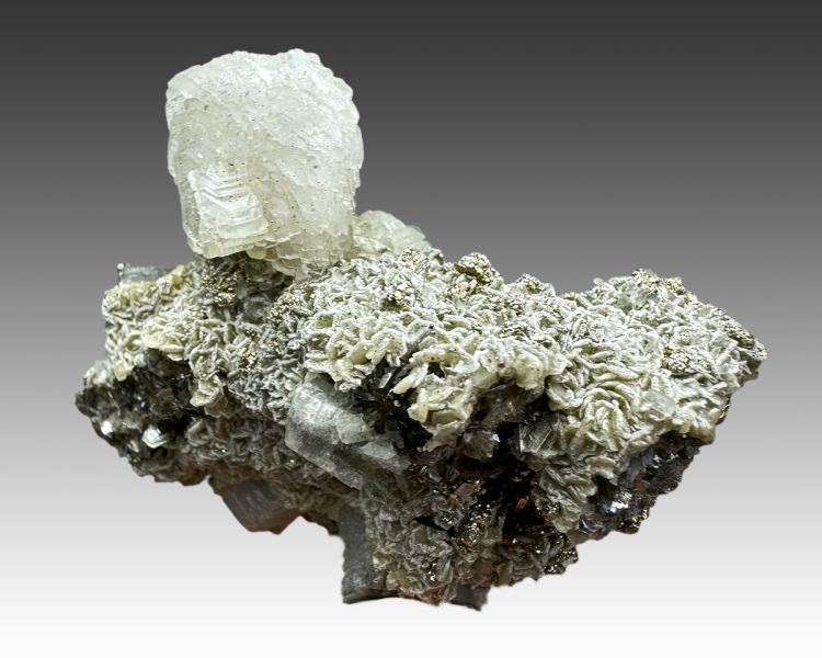 Fluorapatite with Siderite, Muscovite & Pyrite on Arsenopyrite