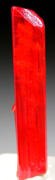 Deep orange/red, translucent to transparent single Crocoite crystal from the Red Lead Mine. Complete and undamaged. Ex. Mike Keim.Data last checked on 21st Dec 2025