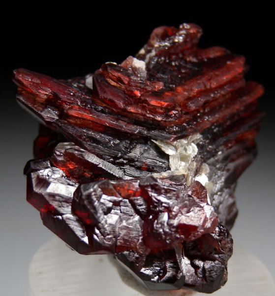 Satiny red Spessartine with a wild, unusual 'honeycomb' growth structure on front. Well crystallized all around undamaged floater specimen with good translucency. I've only ever seen a few of these before, this one acquired perhaps 20 years ago. Ex. Mike Keim.Data last checked on 21st Dec 2025