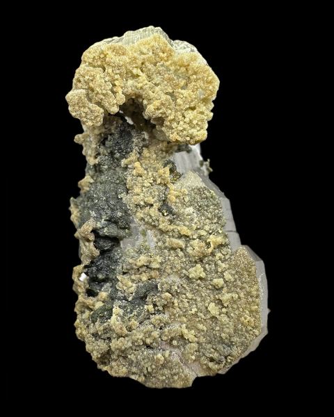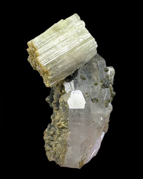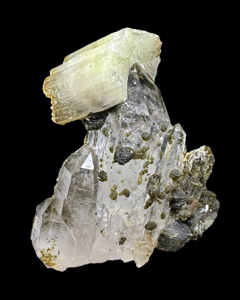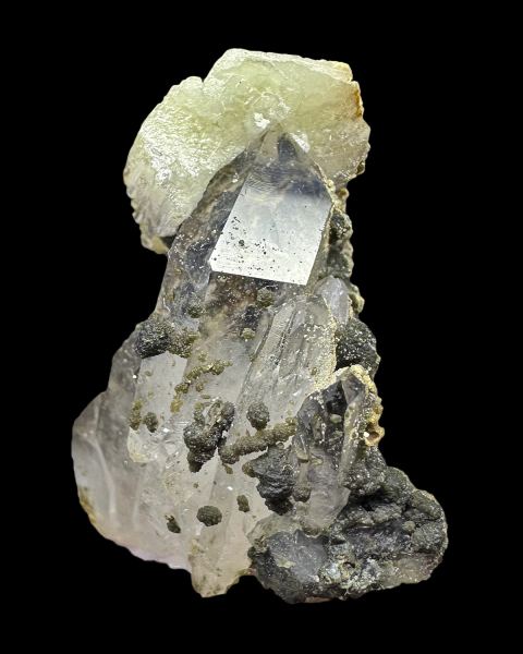 Cool combo of lustrous fluorapatite crystal with muscovite, siderite and pyrite, growing on top of the lustrous quartz. From famous Panasqueira mines in Portugal.Data last checked on 1st Jan 2026