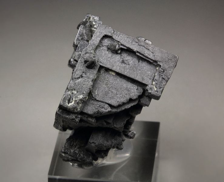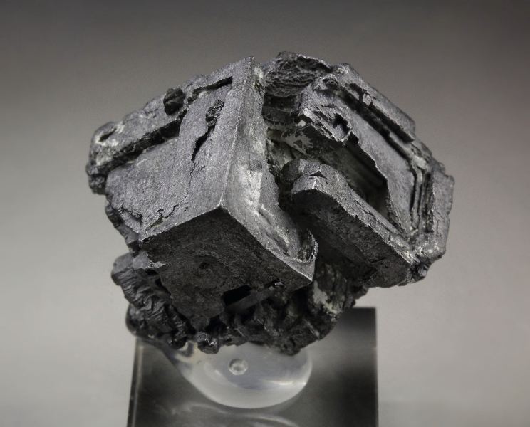An outstanding specimen of skeletal galena from the famous 9th Septemvri mine, Madan ore field, Bulgaria. The mines in Madan produce some of the finest galena in the world and this is a superb specimen. The skeletal structure is caused by very fast growth of the mineral where the crystal faces do not have the time to be completed because the edges grow faster than the center. It displays very attractive stepped growth, forming gorgeous terraced structures on all faces. The galena cubes are matt lustrous, well formed and have a sharp geometry. On the galena are seen black sphalerite incrustations proving the natural origin of the skeletal structures. In very good condition – some small contacts. On acrylic base., Astonishing!, Data last checked on 1st Jan 2026