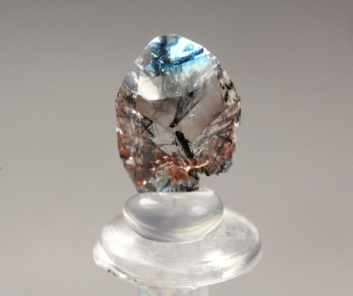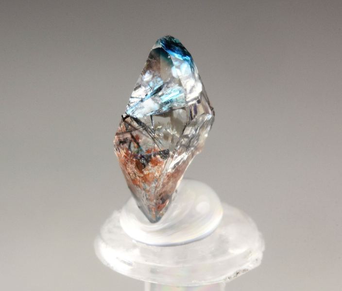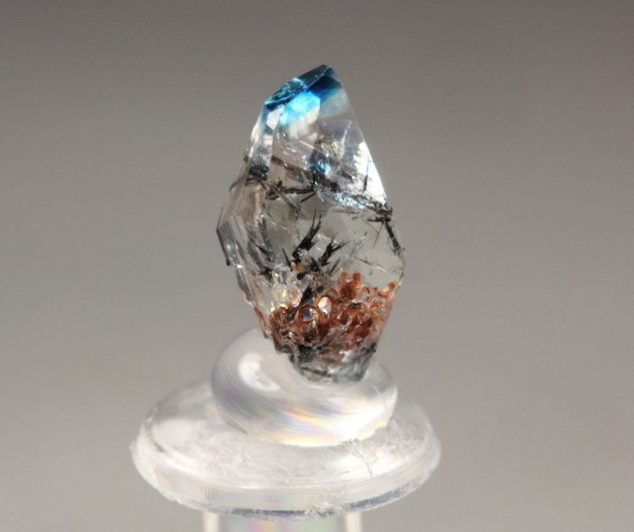 A gorgeous specimen of gem euclase crystal with tourmaline var. schorl inclusions from Last Hope Mine, Zimbabwe. The euclase from this locality is quite distinct and highly desirable. The crystal has an incredible rich royal blue color at the cap to colorless at the center. It is transparent and gem with a glassy luster. Some black needle schorl inclusions are seen too. It is complete all over. In very good condition – one small contact. On acrylic base., Astonishing!, Data last checked on 17th Jan 2026