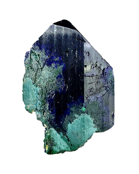 Tsumeb specimen - sharp azurite crystal with rosasite and malachite. Classic.Data last checked on 21st Jan 2026