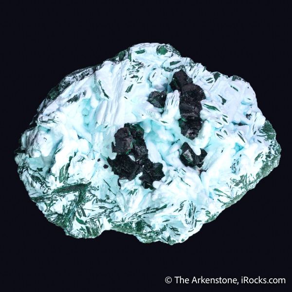 This is a Kolwezite & Malachite ps. Dolomite on Malachite/Chrysocolla ps. Baryte from Tenke-Fungurume area, Lualaba, Katanga Copper Crescent, DR Congo. The Tenke mine was certainly the newest and most surprising locality for interesting copper minerals in 2020-2023 in the mineral collecting world, as it was producing display-quality specimens of various beautiful secondary copper and cobalt minerals, such as malachite, chrysocolla, and interesting pseudomorphs of these species with quartz and other minerals.Data last checked on 24th Jan 2026