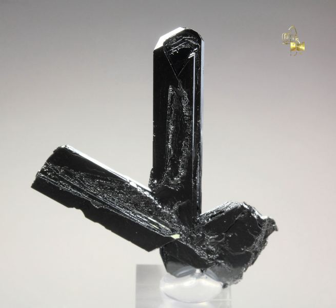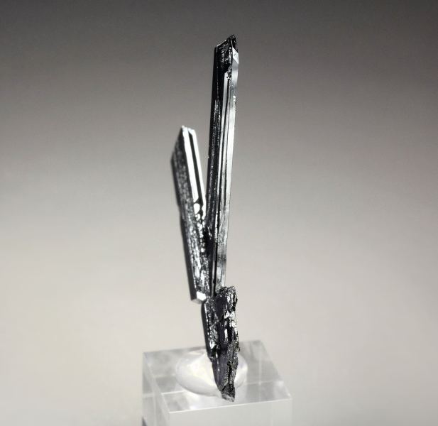Superb hematite blades from Puy de Tenuzet (Tunisset) quarry, Puy-de-Dome, France. It comes from a new find. It displays very attractive flat hematite blade crystals, growing in a sculptural cluster. They are razor sharp, well formed with excellent brilliance and light reflection. It displays all over 360 degree. One blade damaged. On acrylic base., Fine hematite!, Data last checked on 25th Jan 2026