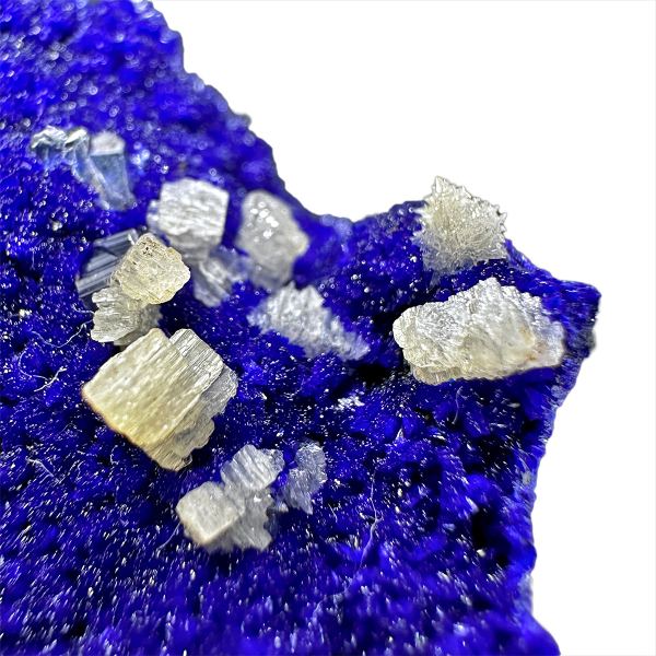 Sparkly miniature of electric blue azurite and lustrous cerussite. From 2024 find in Republic of the Congo.Data last checked on 8th Feb 2026 - specimen may no longer be available