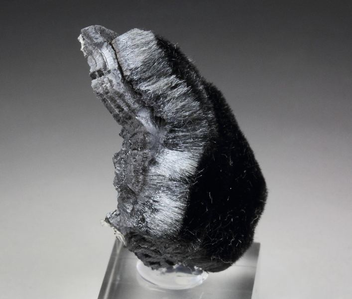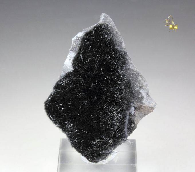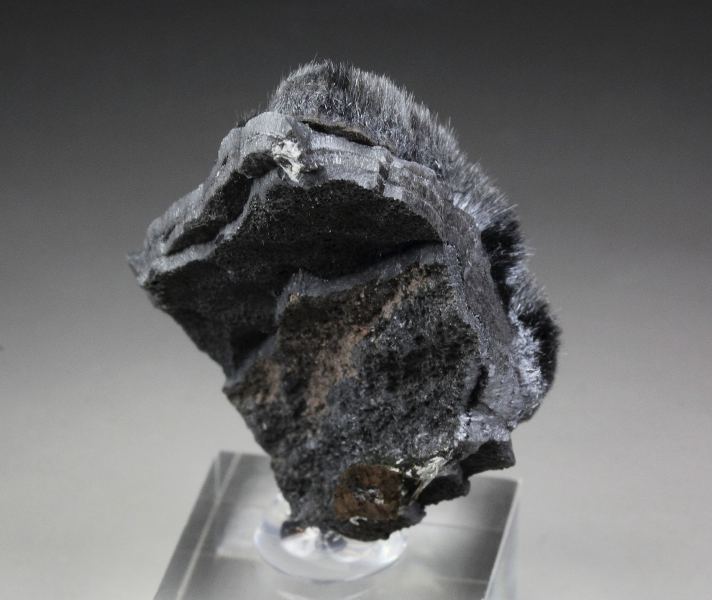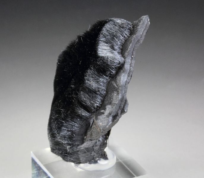 A superb specimen of the rare now psilomelane from Socorro County, New Mexico, USA. It comes from the collection of the famous mineral painter Frederick C. Wilda, USA - with label. Psilomelane is a mixture of hard black manganese oxides. It displays a carpet of dense psilomelane needles. They form vibrant black tufts of tiny metallic, acicular sprays. The crystals are very delicate with strong sparkling appearance. In very good condition. On acrylic base., Choice psilomelane!, Data last checked on 16th Feb 2026