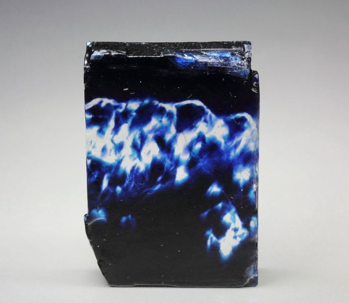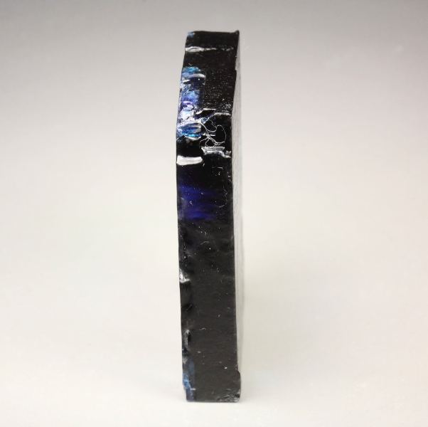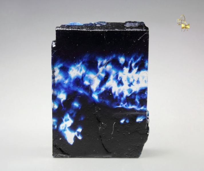 A striking halite crystal from Hattorf Potash Works, Hesse, Germany. This is an old and rare piece. It displays a well shaped and sharp tabular crystal complete all over. It is transparent and clear. It has rich and saturated irregular indigo-blue inclusions, adding a gorgeous colorfulness. Must not be washed. Some imperfections., Amazing!, Data last checked on 20th Feb 2026