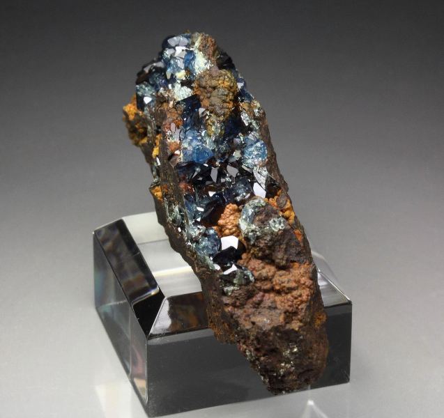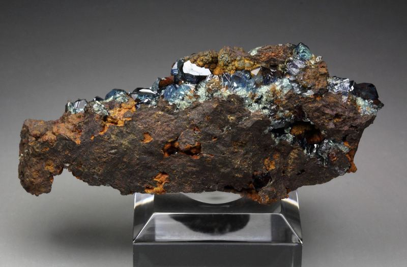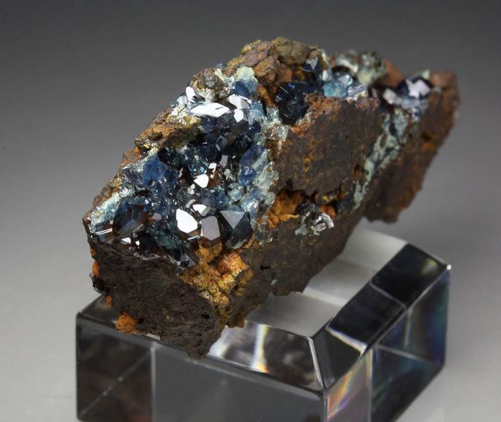 Top quality, gem scorodite crystals with striking blue color and bedazzling luster from the famous Ojuela Mine, Mapimi, Mexico. The scorodite specimens from Ojuela Mine are rare and among the finest for the species. It displays killer scorodite crystals to 3mm growing on a base. They have a strong glassy luster and a razor sharp habit. The crystals display an amazing gemminess. They have a gorgeous and rich blue color. In good condition – some small contacts. On acrylic base., Exceptional!, Data last checked on 24th Feb 2026